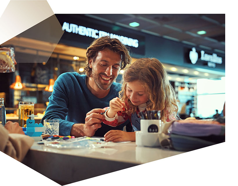 Terminal 2 is home to the oneworld and SkyTeam alliances as well as other important airlines including Etihad and Emirates. It has a highly international passenger mix with correspondingly great purchasing power. In the public areas, the sales potential is additionally boosted by meeters & greeters, visitors, and employees. Tourists from all over the region are also attracted by a food court on the top level with a large play area for children and access to the Visitors‘ Terrace, which features an incredible view of the airfield.