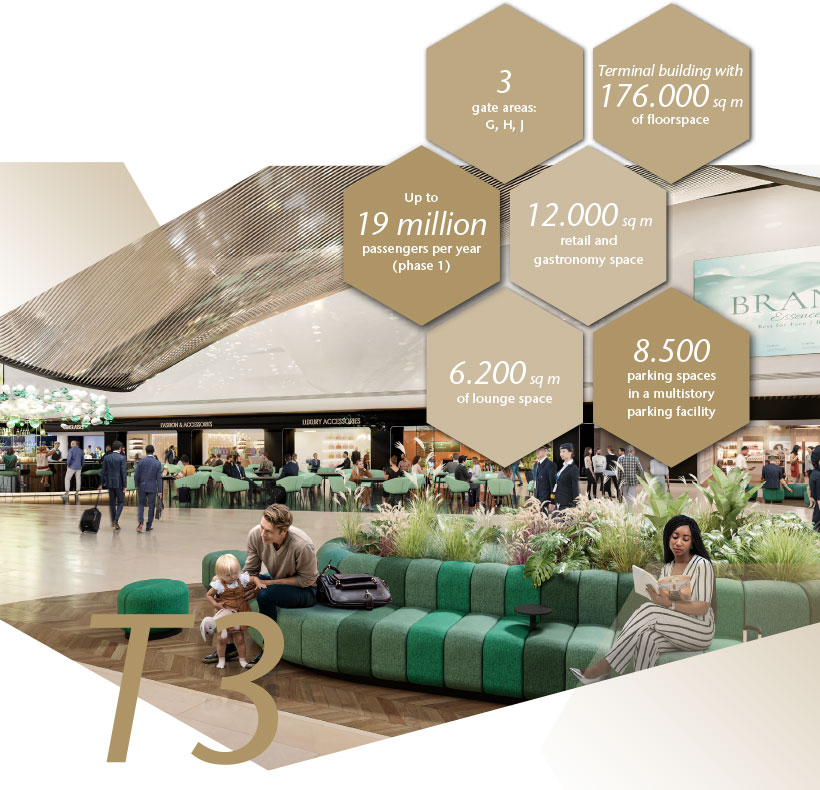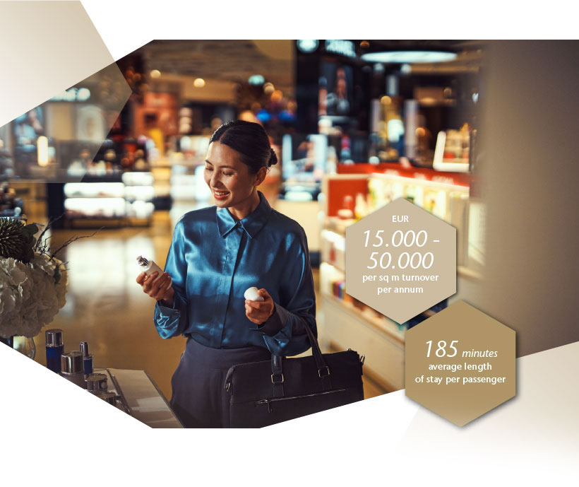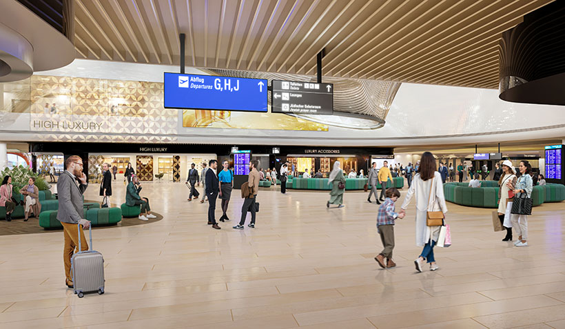 In Terminals 1 and 2, high passenger numbers – exceeding 200,000 on peak days – ensure strong demand and sales revenues. Here, international luxury brands are combined with unique regional concepts to create a harmonious mix of shops, travel services, and food and beverage outlets. Terminal 3 will bring the airport to new architectural heights including a new central marketplace with exclusive retail space.